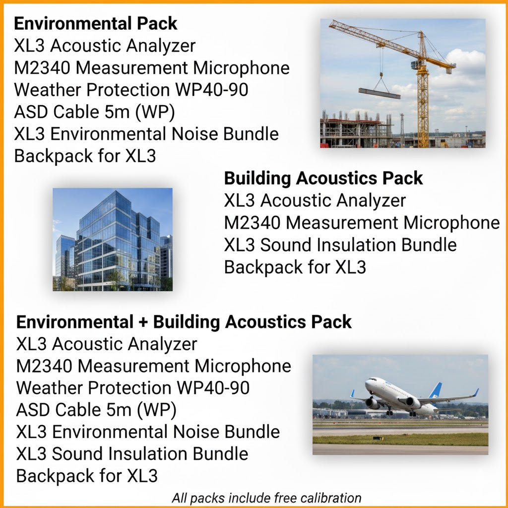 The included XL3 Environmental Noise Bundle consists of the Extended Noise Measurement Option and a Data Explorer software permanent license